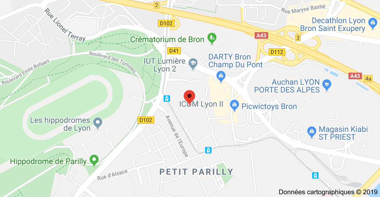 Le campus Lyon 2 Porte des Alpes est situé sur la commune de Bron, à proximité de l'hippodrome et du parc de Parilly.